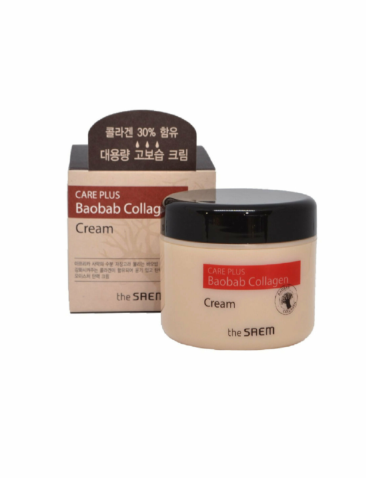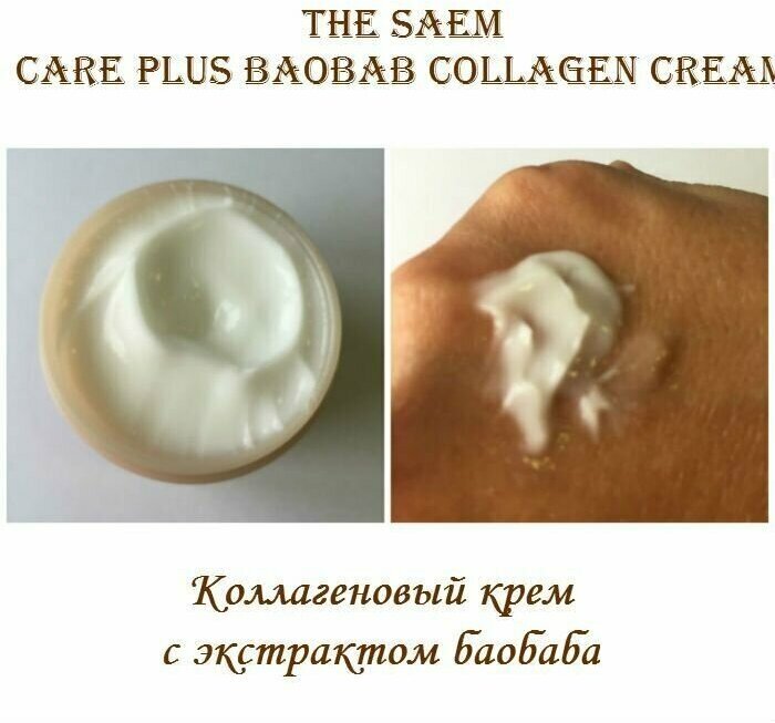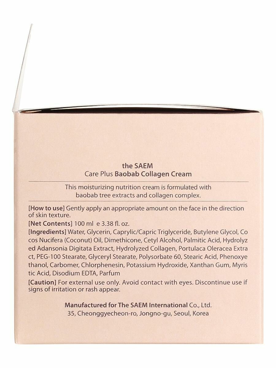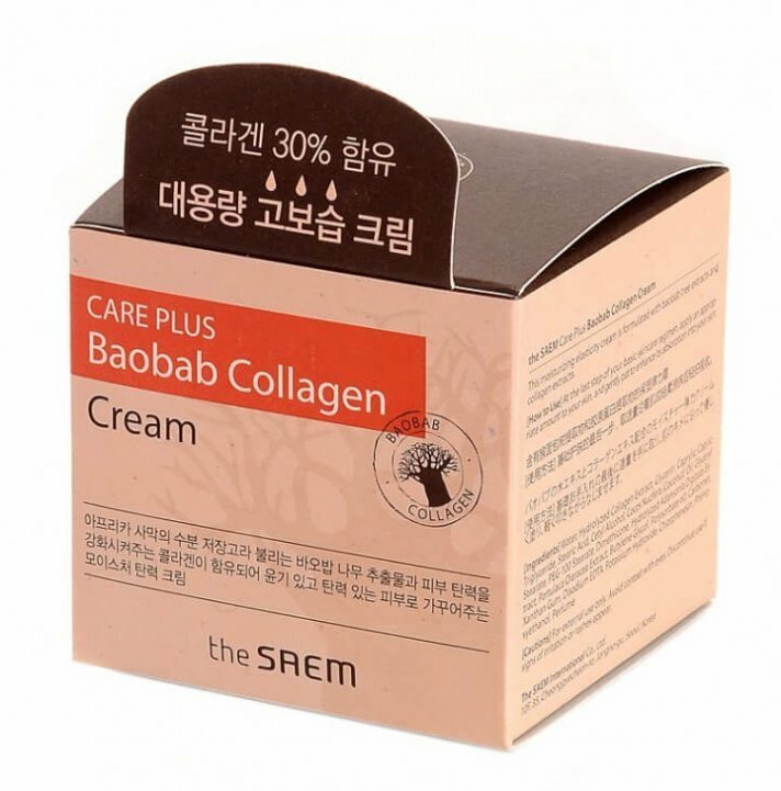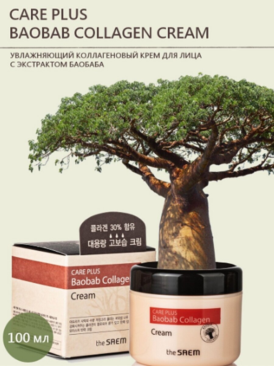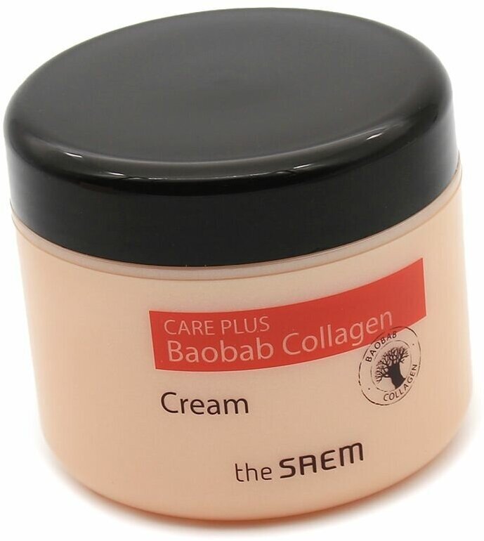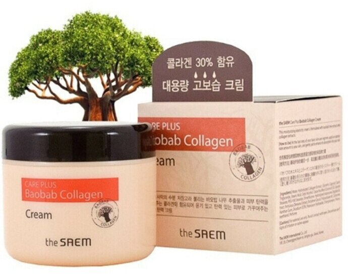 Коллагеновый крем для лица с экстрактом баобаба The Saem Care Plus Baobab Collagen Cream обладает интенсивным увлажняющим действием. Он эффективно борется с основными проблемами сухой и обезвоженной кожи: шелушениями, чувством стянутости, мелкими морщинками, тусклым цветом лица. Кроме того, при регулярном применении крем выравняет тон, в результате кожа приобретет здоровое сияние.