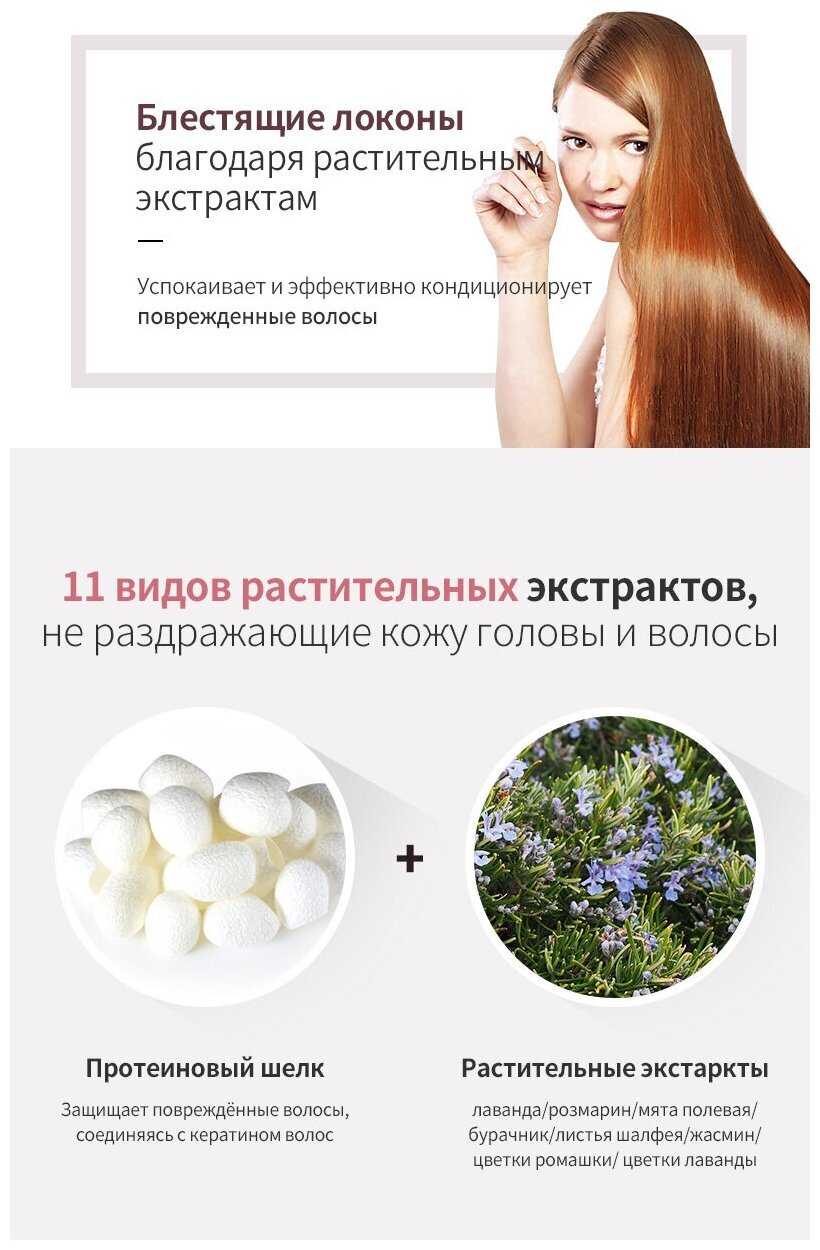 Великолепно очищает и увлажняет кожу головы, защищает и придает волосам объем, блеск и шелковистость. Шампунь идеально подойдёт для чувствительной кожи головы, так как в качестве главного очищающего компонента средства используется мыльнянка (мыльная трава).