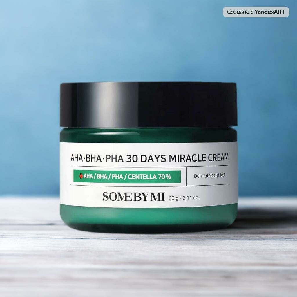 Восстанавливающий крем для проблемной кожи Some By Mi AHA-BHA-PHA 30 Days Miracle Cream с 3-мя видами кислот и экстрактом центеллы азиатской. Крем эффективно лечит акне и воспаления, предупреждает их дальнейшее появление, способствует сужению пор и осветлению постакне. Средство регулирует выработку кожного сала, матирует, успокаивает кожу и снимает покраснения. Рекомендуется для комбинированной и жирной кожи с расширенными порами.
