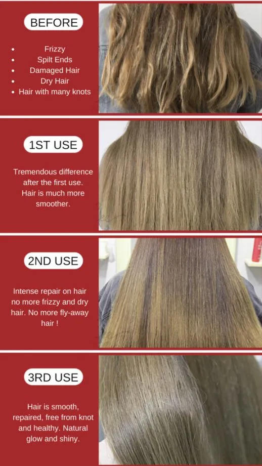 В состав входит 17 аминокислот, которые заполняют пористость волоса, делая их более плотными без утяжеления.