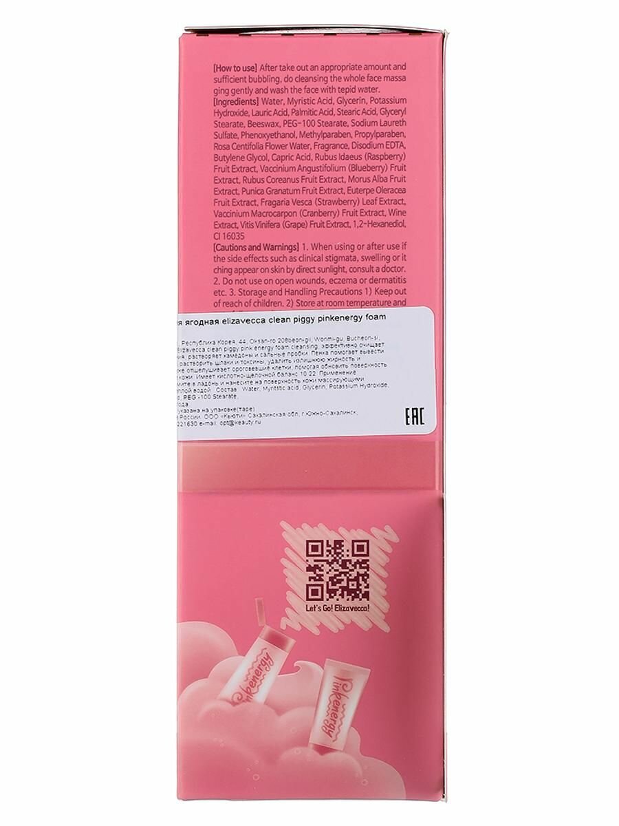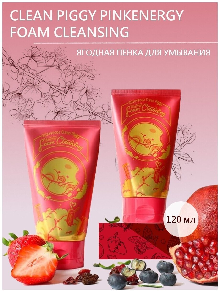 Ягодная пенка для умывания Elizavecca Clean Piggy Pinkenergy Foam Cleansing эффективно удаляет все виды загрязнений и остатки макияжа. Эффективно очищает и отшелушивает ороговевшие клетки, глубоко очищает поры, оказывает антиоксидантное действие, способствует выведению токсинов.