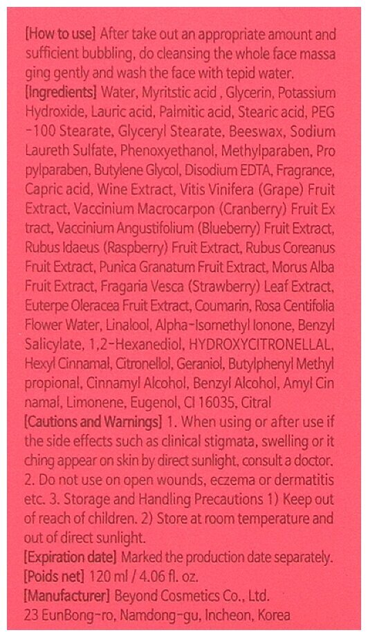 Средство образует густую пену, которая глубоко проникает в поры и устраняет все загрязнения. Пенка имеет приятный аромат ягод.